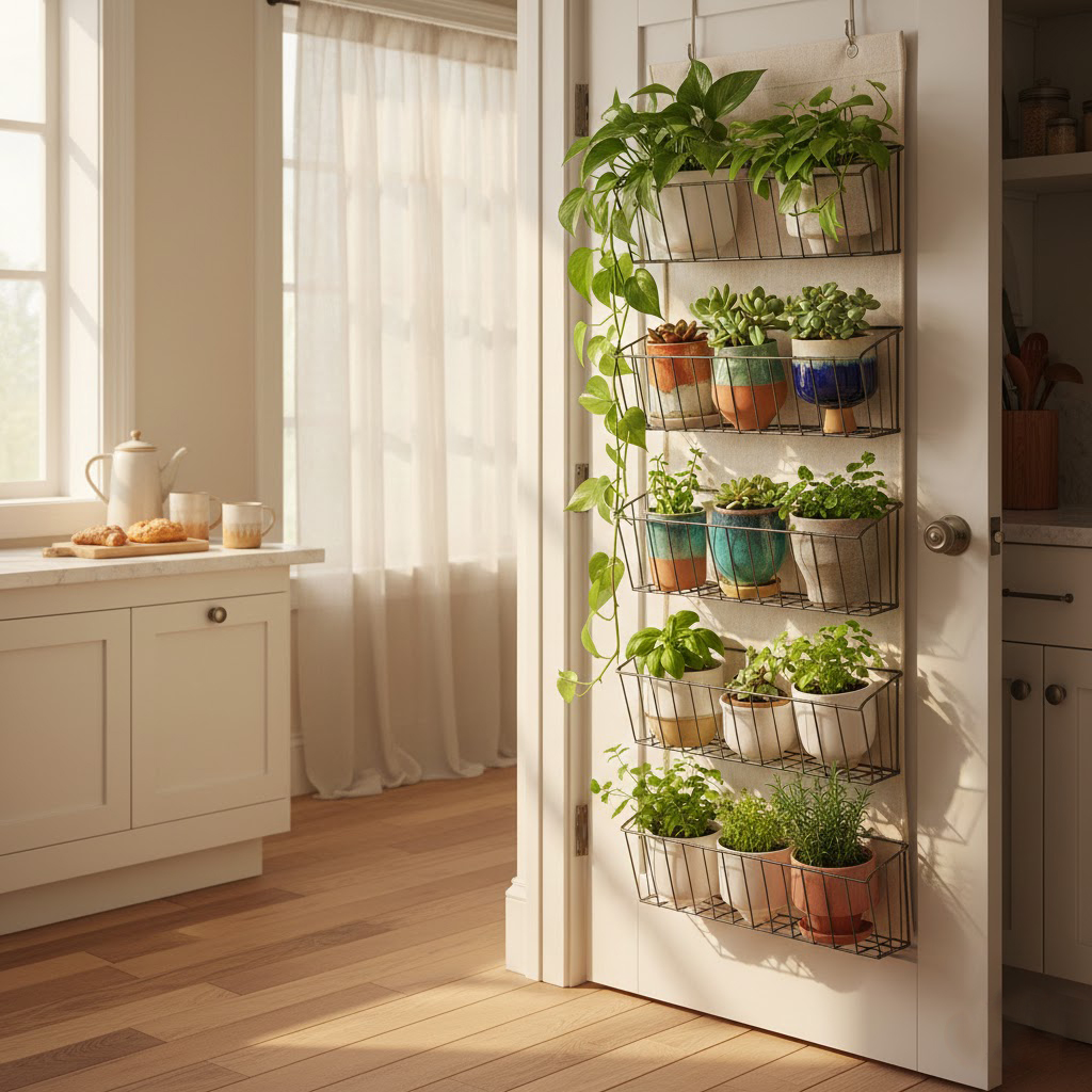 • Expert Insight: Ensure you use lightweight plastic nursery pots inside decorative baskets to keep the door from becoming too heavy to swing.